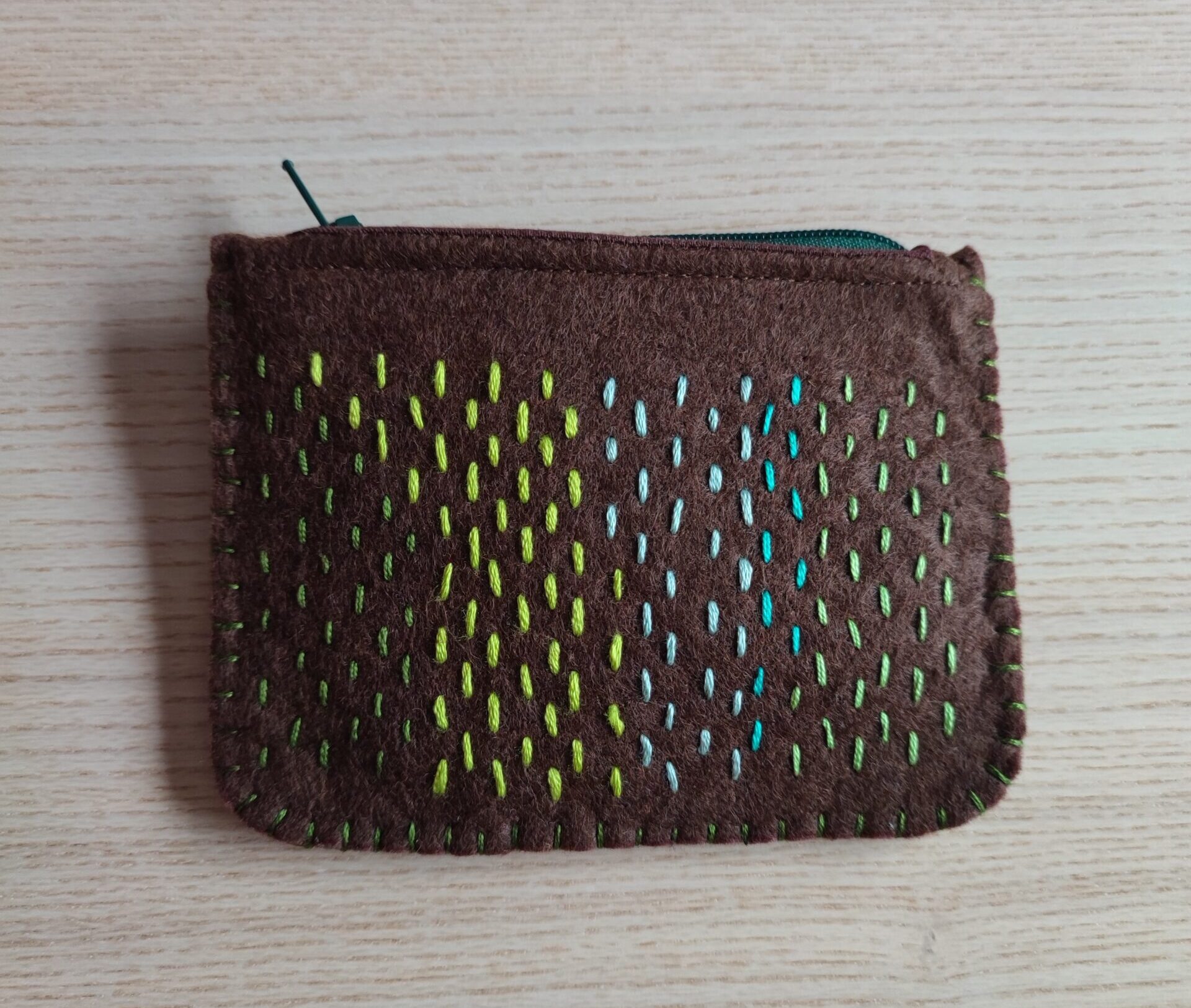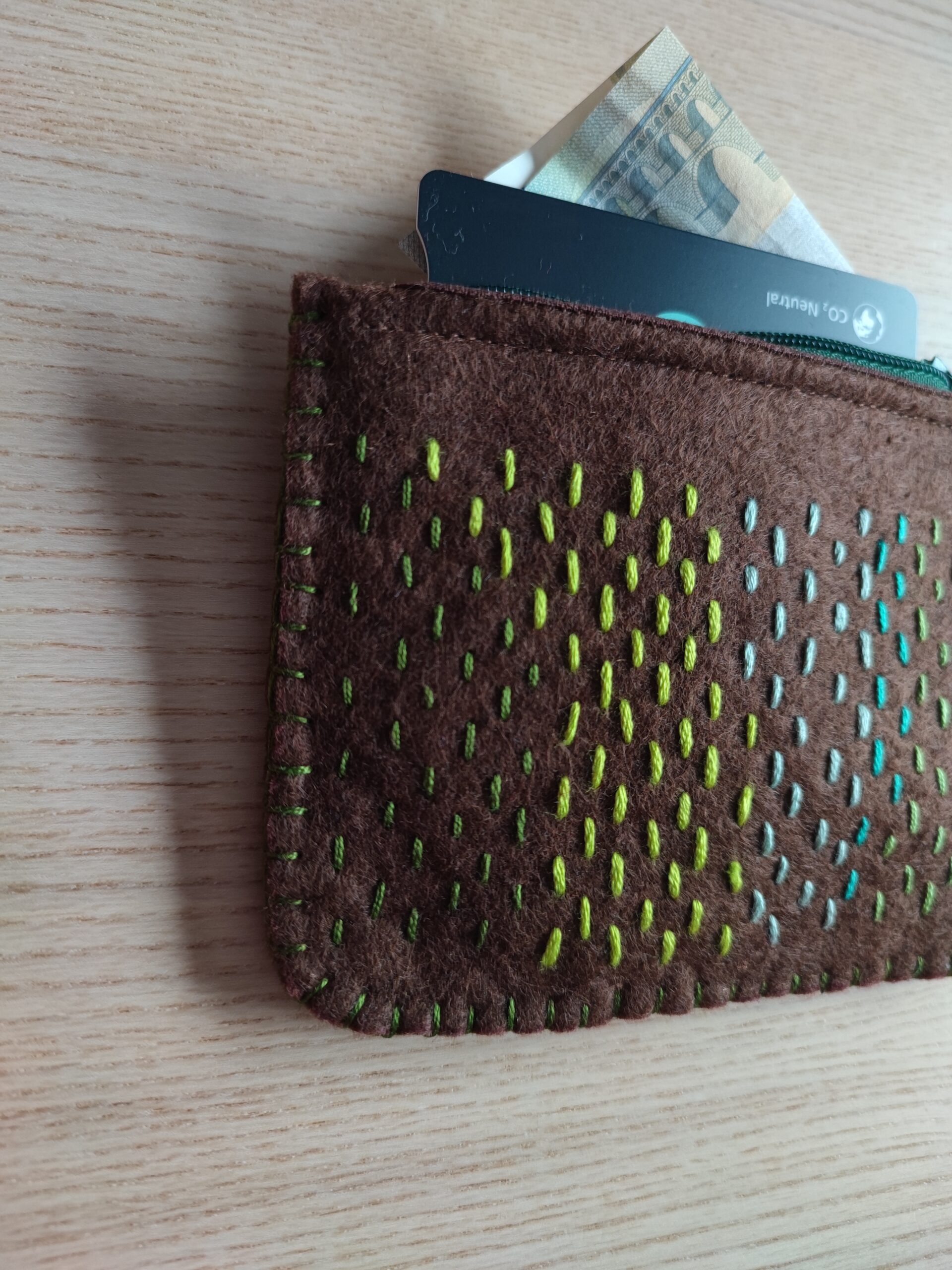 Monedero de Fieltro Bordado Brown and Green Rain Drops