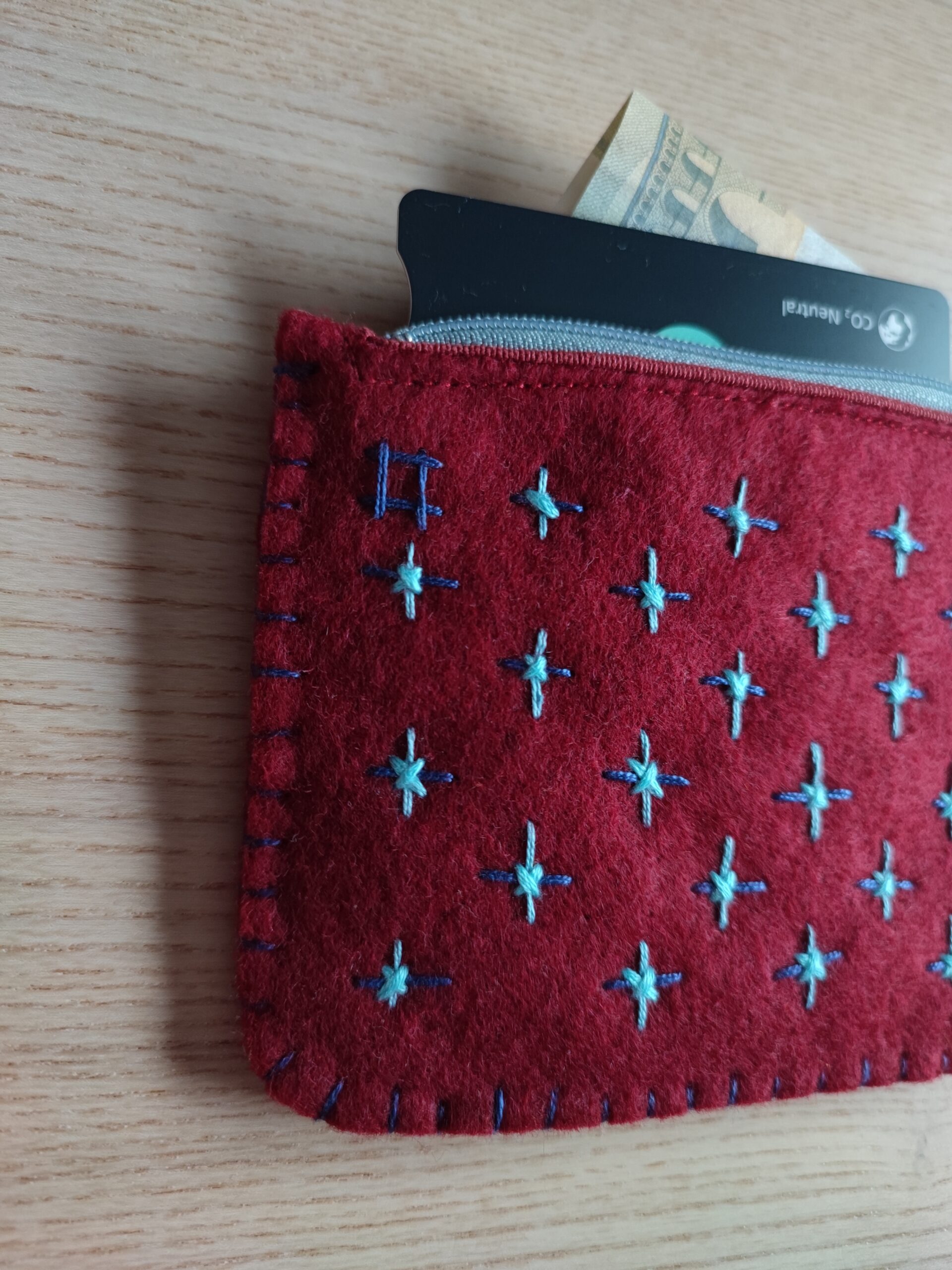 Monedero de Fieltro Bordado Granade anb Blue Shimmening